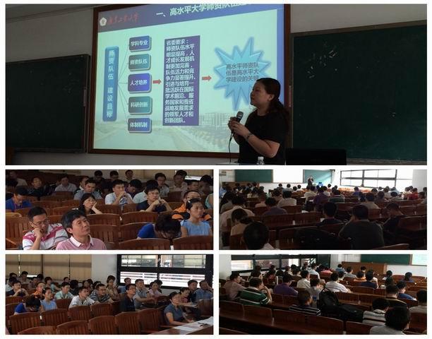会议分上下午两部分进行,上午主要由学院领导传达和解读学校高水平大学建设的相关文件精神和政策。陈颖院长分别从人事、科研、实验室设备及建设、研究生教育、本科教学以及大学生创新创业教育等几个方面解读了学校高水平大学建设的目标、规划、任务、举措和激励政策,并结合学院实际情况进行任务分解,向学院各相关负责人提出了具体的实施要求。bw必威西汉姆联官方网站教学科研规模大、基础好,但对比高水平大学的建设目标还有一定差距,在人才引进、科研团队建设、协同创新能力、科技成果转化并与产业对接等方面还有待进一步提高。胡永俊副院长也结合高水平大学建设目标对bw必威西汉姆联官方网站本科大类招生情况做了介绍。