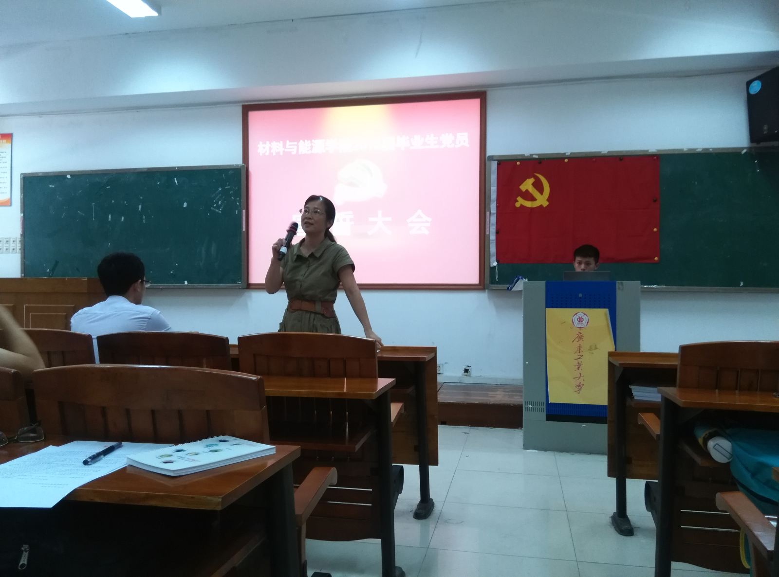 最后,英健文副书记做了讲话,她对毕业生党员即将顺利毕业表示祝贺,并提出了四点要求。首先是努力提高理论水平,将党的理论内化于心,外化于形,不断地有意识的锻炼自己;其次是充分利用组织生活这个平台,与志同道合的先进分子相互学习交流,共同探讨,共同进步;再次是在政治修养上,希望党员同志要有一定的政治敏锐性,要站在全局的角度看问题,要以大局为重,要合理、合法、有序地表达诉求和愿望;最后希望大家时刻谨记共产党员的身份,从身边小事做起,能吃小亏,以实际行动做一名合格的共产党员。