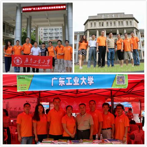 工作组历时四天,行程超过1600公里,足迹遍及梅州地区两区一市五县,克服了天气酷暑和阵雨的重重困难,圆满完成了今年在梅州的招生宣传任务。26号上午,我校代表与兴宁一中张远明校长共同签订了广东工业大学优质生源基地的协议书并合影留念。在东山中学和梅县高级中学,梅州籍材料与能源学院校友冯宏山作为优秀校友代表,参与了工作组的咨询活动,他的现身说法起到了非常明显的宣传效应;在梅州市的咨询现场,虽然天气炎热,骄阳似火,我们学校的摊位还是被学生和家长里三层外三层地围得水泄不通。梅州是革命老区,因此关于贫困地区地方专项计划这方面的咨询特别火爆,工作组每位老师都是汗流浃背全身湿透声音嘶哑,带去的资料也很快被抢光,梅州学子对我校的认同可见一斑。