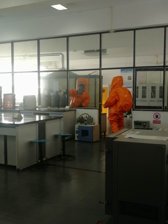 紧接着开展了易燃易爆气体乙炔泄漏的应急演练。经过国家安全一体化会员及君源环保演练培训师屈俊勋老师的培训,参与应急演练的师生完整演练了发现乙炔泄漏,报告相关人员和部门,应急人员到场处置,处置完毕重新移交场所给院方等整个过程。通过这次活动,让师生进一步熟知实验室安全相关知识,了解了易燃易爆气体泄露的应急处置程序,增强了师生的安全意识,提高了师生实验室安全应急处置能力。
