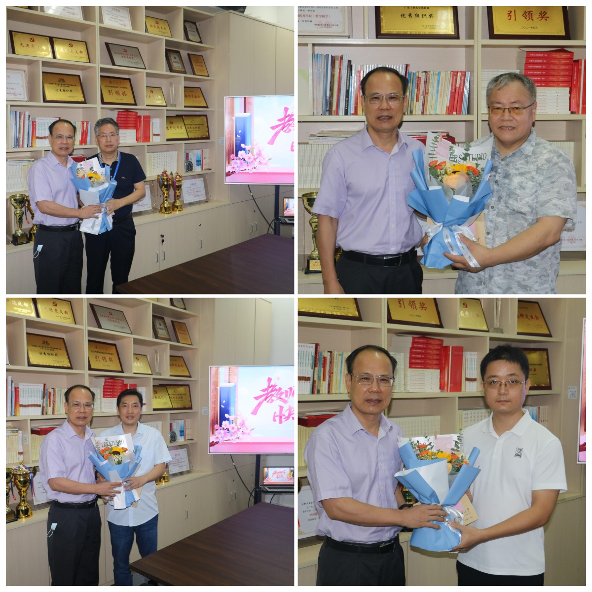 晨曦白露育桃李,金秋硕果慰园丁。在第38个教师节来临之际,9月7日上午,邱学青校长一行来bw必威西汉姆联官方网站开展教师节慰问活动,向学院全体教职员工致以亲切的问候和诚挚的节日祝福,与学院优秀教师代表黄少铭教授、闵永刚教授、芮先宏教授和谭剑波教授进行交流座谈。学校党委办公室、校长办公室主任植林、人事处处长刘三林等同志参加了慰问调研活动。