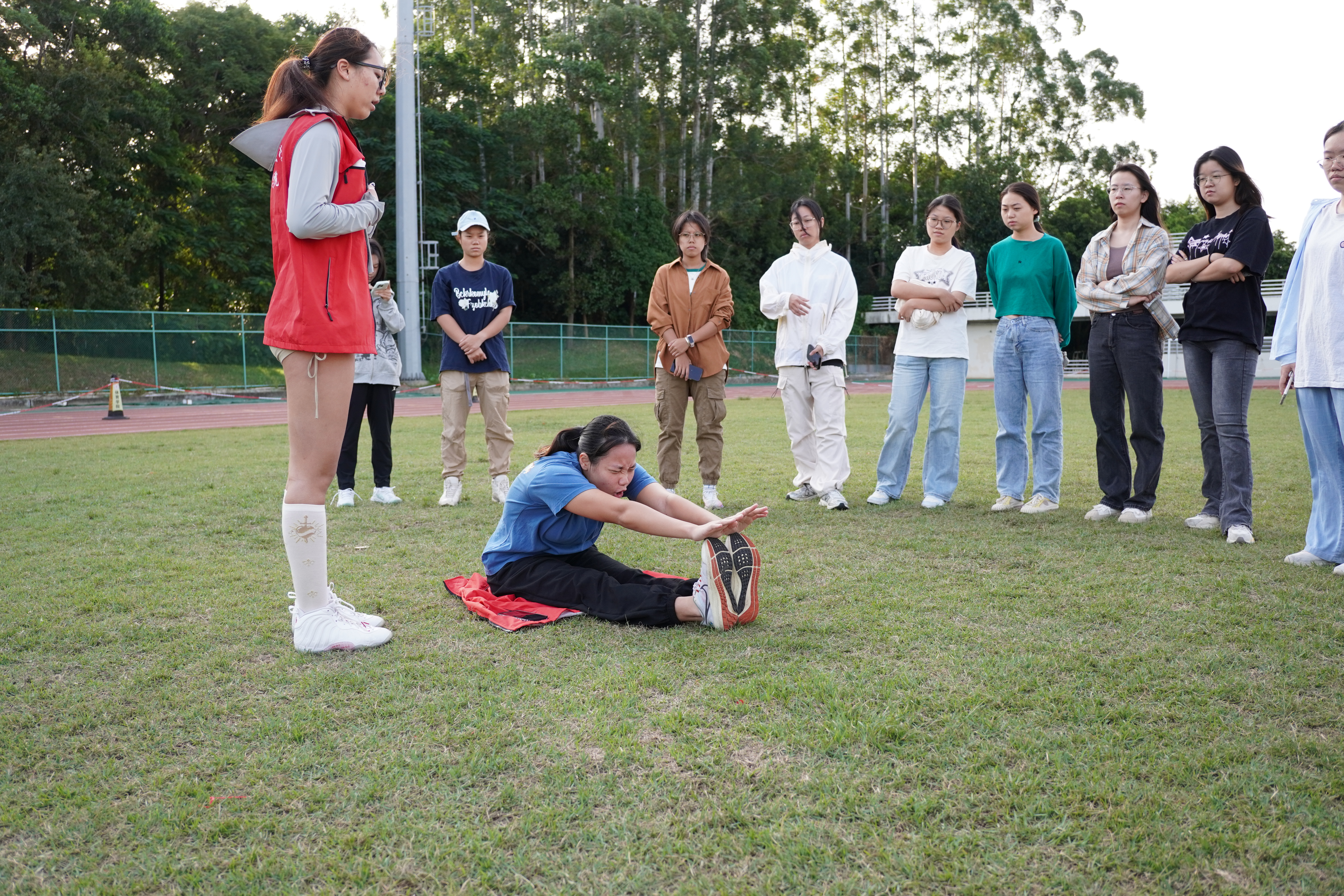 为进一步提高我院学生体质健康水平,营造良好的体育氛围,鼓励学生迈开脚步,释放压力,振作精神。10月23日,我院联合体育学院体质健康宣讲团在中心田径场开展体质健康教学训练活动,本次活动共吸引了本科各年级的班长、体育委员等学生代表近100人参加。