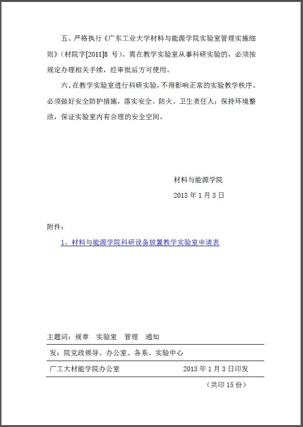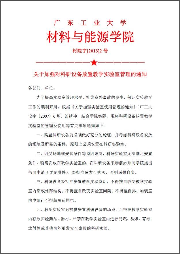 院字13年2号 (关于加强对科研设备放置教学实验室管理的通知)