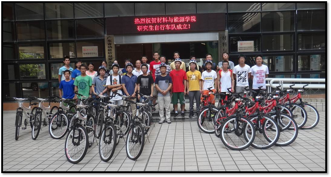 9月29日,在学院杨卫平书记、杨元政副院长、许巍主任和辅导员吴其光老师的共同见证下,材料与能源学院研究生自行车队在工学三号馆一楼正式成立。