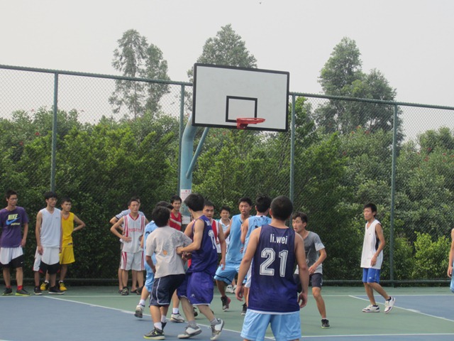 比赛采用循环赛制,各年级代表队间进行循环赛,然后决出冠亚军。赛场上,篮球健儿们奋力拼搏,勇于奋进,展开了不分你我的厮杀;而场下的观众和啦啦队传来的加油声,呐喊声,碰撞声,与场上的厮杀声交织合奏成一首振奋人心的狂想曲。比赛各方球员攻势凶猛,防守坚如磐石,配合颇有默契,不放过任何一个得分的机会。三分,二分,抢断,快攻,回防,每个队员都发挥得淋漓尽致,让我们充分感受到队员的热情和篮球的激情魅力。